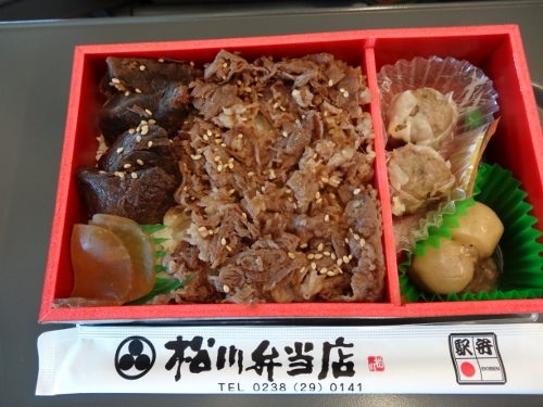山形駅の駅弁「牛めし弁当」米沢牛と山形牛が入っています。