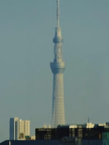 上野駅から東京駅の間にスカイツリーが見えます。東海道新幹線では見えません。