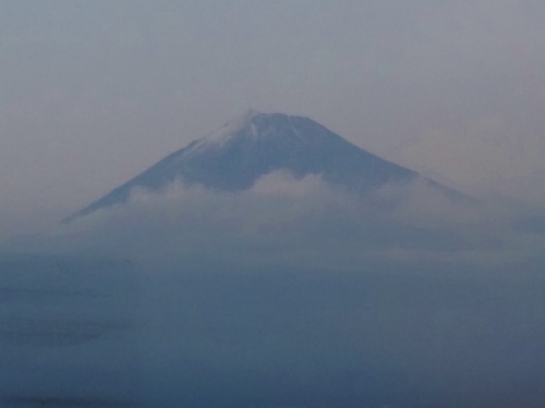 東海道新幹線の車窓より 三島を過ぎた辺りで、見えます。日没直前で、ぎりぎり見えました。