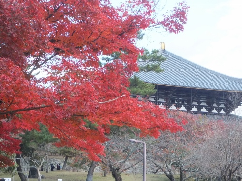 講堂跡(大仏殿の裏側)の背の高いイチョウの木
