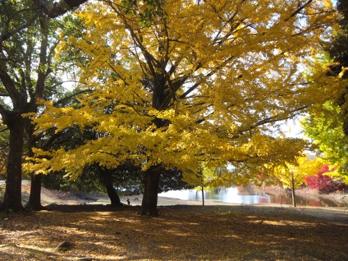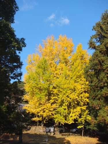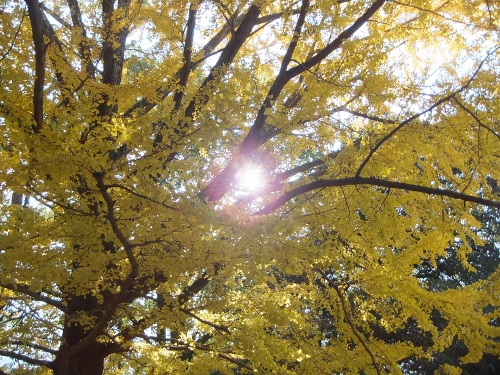 大仏池の大イチョウの木 この辺りから太陽が照り始めました。