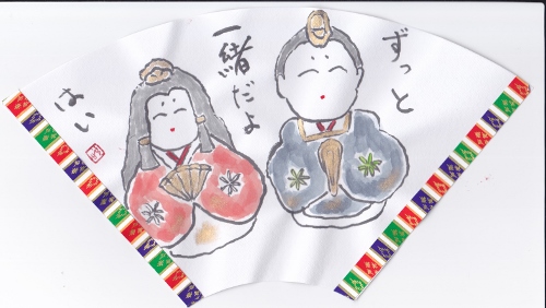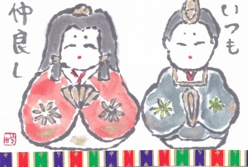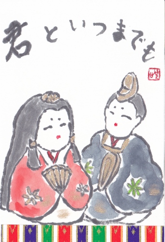 2月は恒例のおひな祭りの絵手紙です。