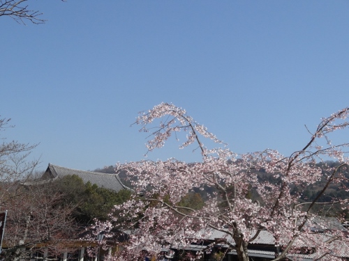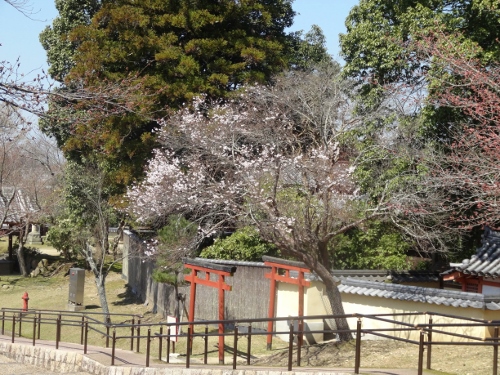 東大寺指図堂横のコヒガンザクラ 朱色の鳥居とのコラボが良いです。