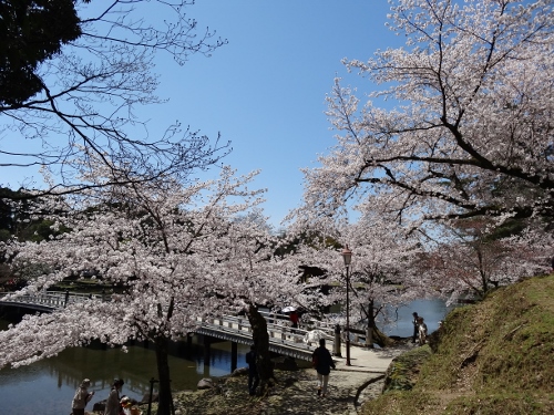 鷺池のソメイヨシノ 浮見堂のある辺りです。一番良い時期で、見事です。