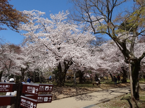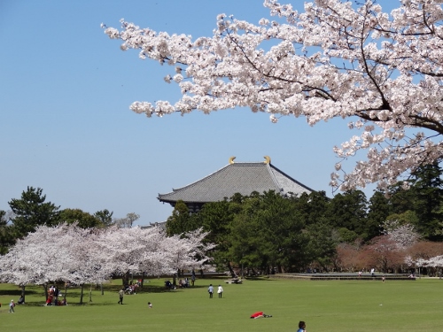 春日野園地から大仏殿を望む。こちらもソメイヨシノが満開。