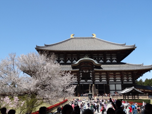 大仏殿と桜 ものすごい参拝客です。