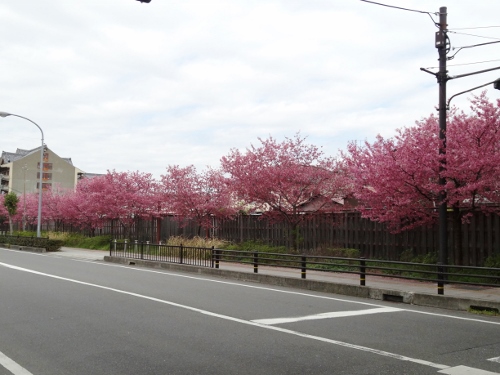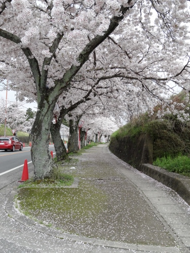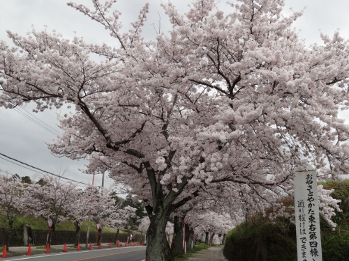 こちらは川沿いでなく、道路沿いの桜並木 見事に満開です。