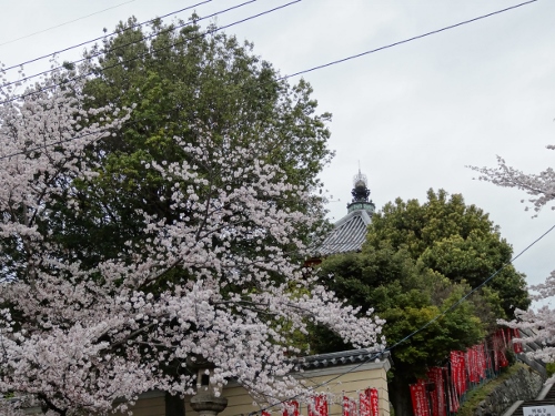 興福寺の南円堂の屋根とソメイヨシノ
