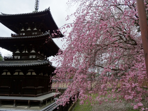 興福寺の三重塔前のしだれ桜とソメイヨシノ