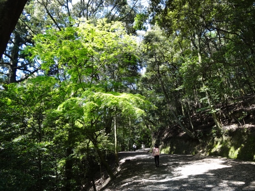 主人と二人で、春日山原始林を通って、若草山の山頂へ行きます。