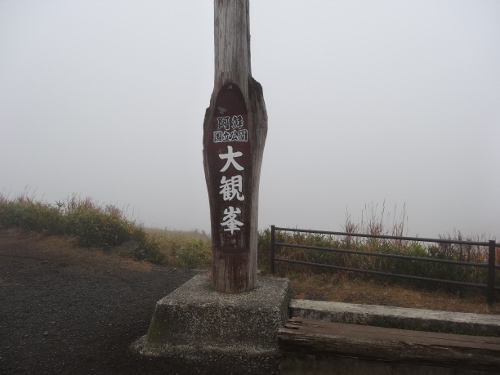 由布院から熊本へ 途中の大観峯(だいかんぼう) 霧で何も見えず…。