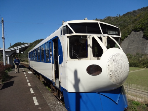 窪川→宇和島 ホビートレイン 新幹線0系風の電車 中には模型も展示されてます。