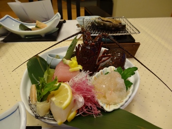 伊勢海老、アワビ、松阪牛、最高の夕食でした。