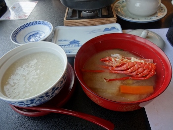 伊勢海老の味噌汁と中華がゆ