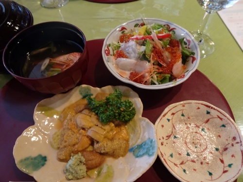 昼食は、ウニ丼 ご飯とウニが別々に出てきました。