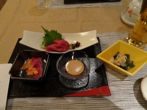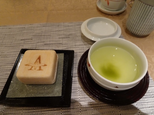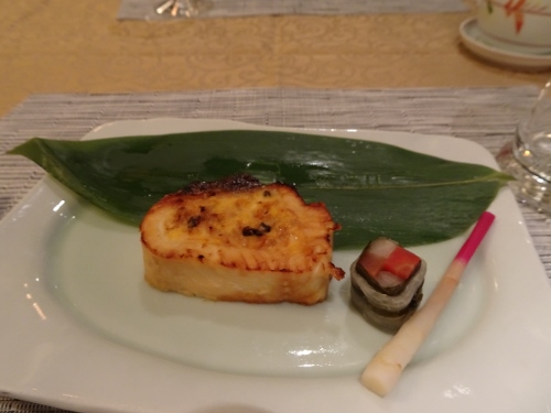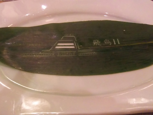 夕食は、和食 飛鳥Ⅱのロゴの入った最中