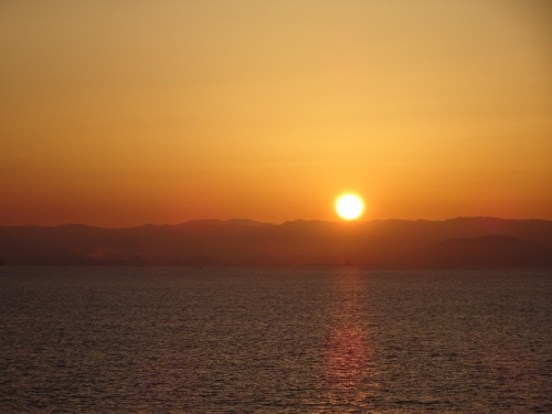 細島港を出港後のきれいなサンライズ(ベランダより)