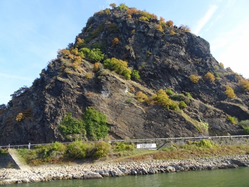 この岩が有名なローレライ (ここから、女性が身を投げたという伝説)