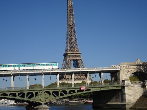 エッフェル塔を借景に、橋の上をメトロが走ってる瞬間を激写