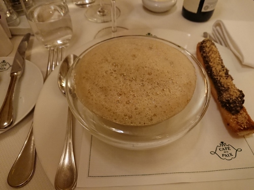 カプチーノ仕立てのマッシュルームのヴイヨンスープ 森のきのこ香草添え