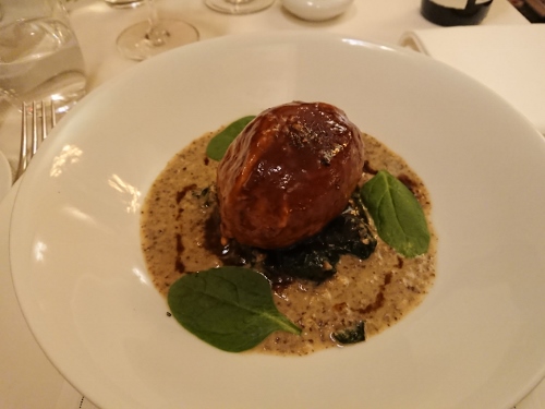 仔牛のロースト・ア・ラ・ノワゼット キノコの付け合わせ、カボチャのコンフィ