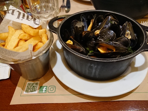 ランチは「レオン」オペラ店 大人気のムール貝 事前に調べておきました。