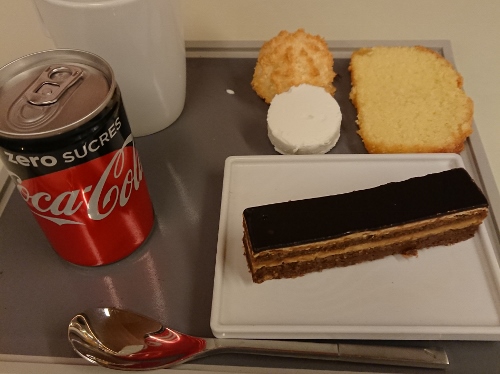 ありませんが、エール・フランスのラウンジが利用可。スイーツが充実してます。