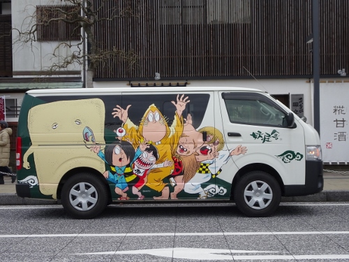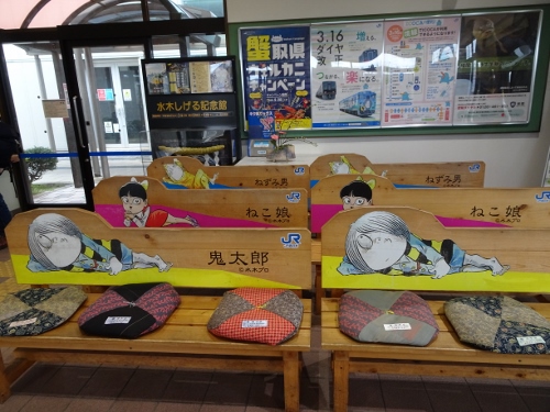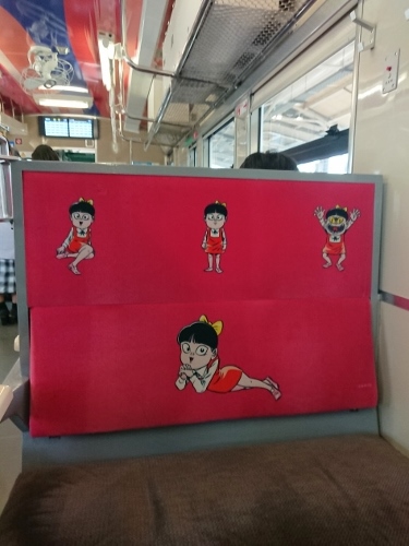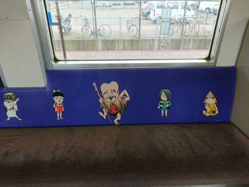 帰りは、連結車で、先頭は、砂かけ婆の車両で、後続車は、こなき爺
