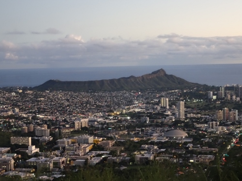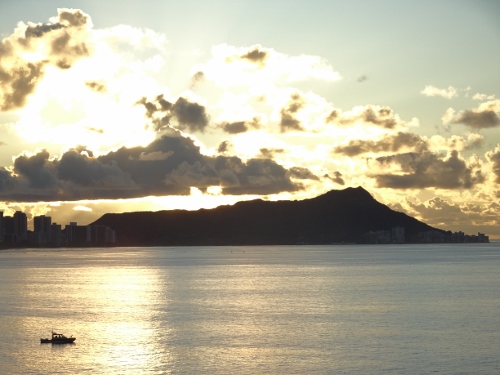 朝日に照らされたダイヤモンドヘッドが見えて来ました。