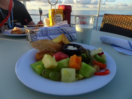 本船での最後の朝食です。アロハカフェのお料理をテラスのアロハ・ラナイで食べました。