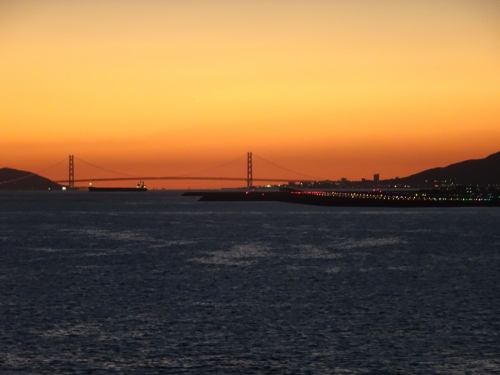 程なくして、明石大橋が見えてきました。夕景が奇麗です。