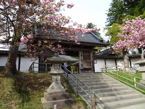 中尊寺本坊表門 遅咲きの関山が咲いていました。