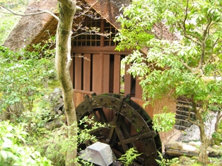 ここは入園料が650円でちょっとお高めです。中はお庭で古い雰囲気のあるお家があったり、池があったり、水車があったり、花木があると言う感じです。多分ここの売りは若草山や春日山が見えるので、その景色だと思います。もし天気が良ければ絶景なんでしょうが、この日は曇りで絶景とは思えず、そこの写真は撮りませんでした。でも、とりあえず、撮影しておけば良かったですね。