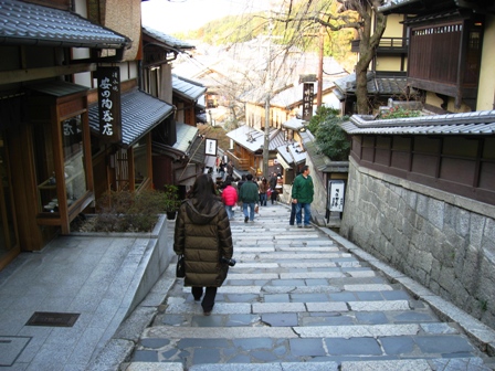 産寧坂(三年坂)です。本当の坂ですし、結構急な階段でした。