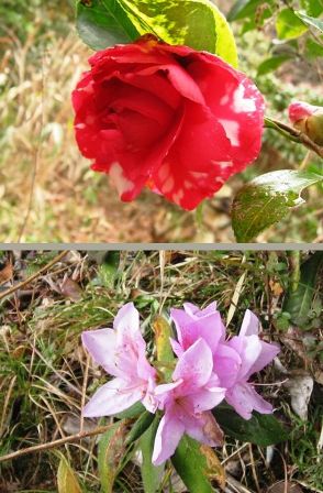 赤と白のまだらな椿は初めて見るかも知れません。珍しい。