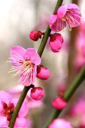 緋の司はがんさんのブログで緋梅がおしべまで赤いと記事に書いておられましたので、