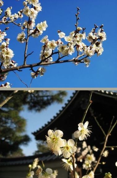 (上)青空を借景にした白梅