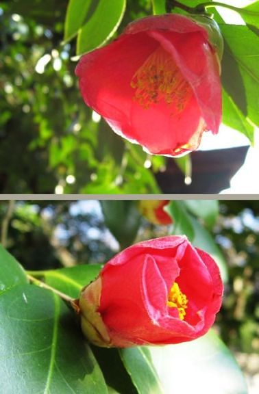 中に入って見ますと、大きな椿の木があって、真っ赤な花が