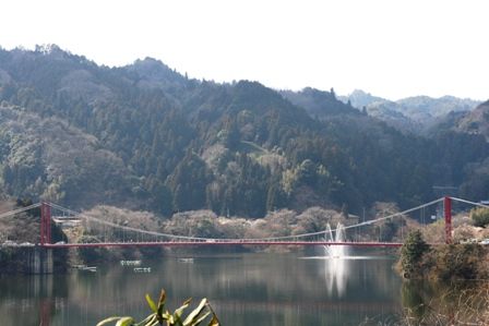 高山ダム湖に八幡橋が写っています。(かたちゃんAコンパクトで撮影)