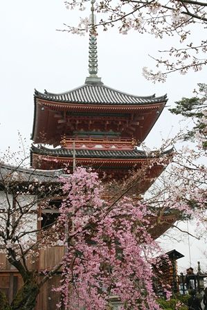 三重塔と紅しだれ桜です。