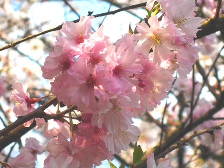 八重紅彼岸桜のピンクの色がとても綺麗で可愛いです。