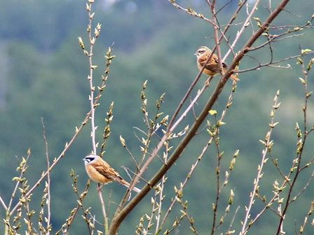 2羽の小鳥も見つけました。調べましたら、ホオジロでした。