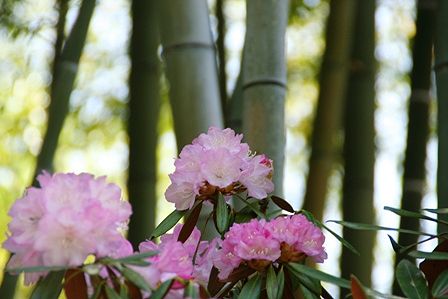 シャクナゲと竹のコラボです。