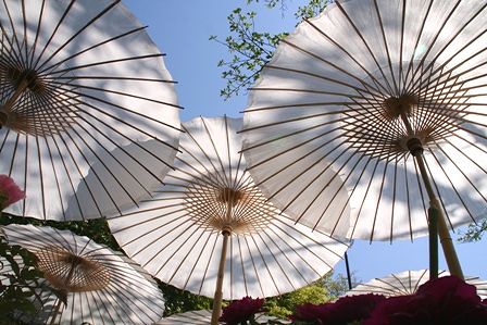 牡丹の日傘を下から覗いてみました。ちょっと幻想的な世界でした。