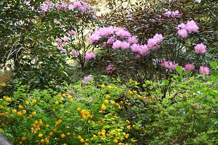 シャクナゲとヤマブキのコラボです。