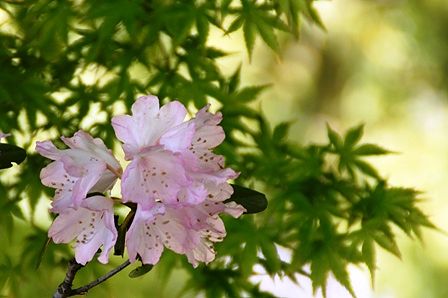 新緑のモミジとシャクナゲのコラボです。すごく似合ってますね。