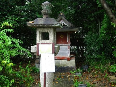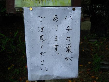 お、石燈籠発見!次女の目がキラリと光ります。でも、何やら貼り紙が。