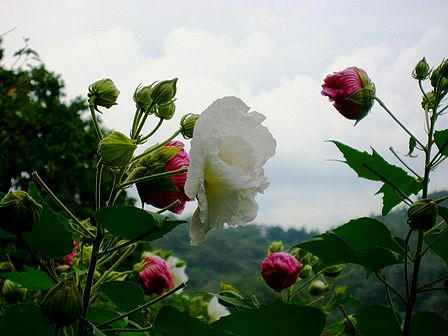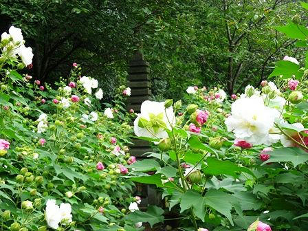 こういう綺麗な酔芙蓉の咲いている中を歩くのは気分もすがすがしく感じられるでしょうね。