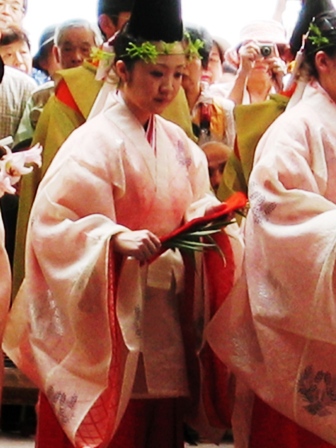 もう諦めて帰ろうと思った時、中継のテレビカメラとか、報道記者達が集まって撮影してる場所があったんです。そこで、何とか巫女さん達の踊りを見る事が出来ました。そして、ほぼメイン行事が終わった辺りでその報道陣達はさっさと帰り、場所が空いたので、そこに入り込みやっと数枚の写真が撮れました。でも、どれも望遠で画像が悪いですし、人だらけの写真です。まあ、雰囲気だけ味わって頂けたらと思います。