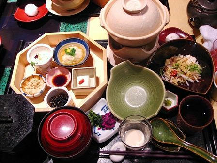 ◎京風小鍋◎とうふしゅうまい◎とうふと揚げ湯葉のサラダ◎五穀米ご飯・漬物・味噌汁